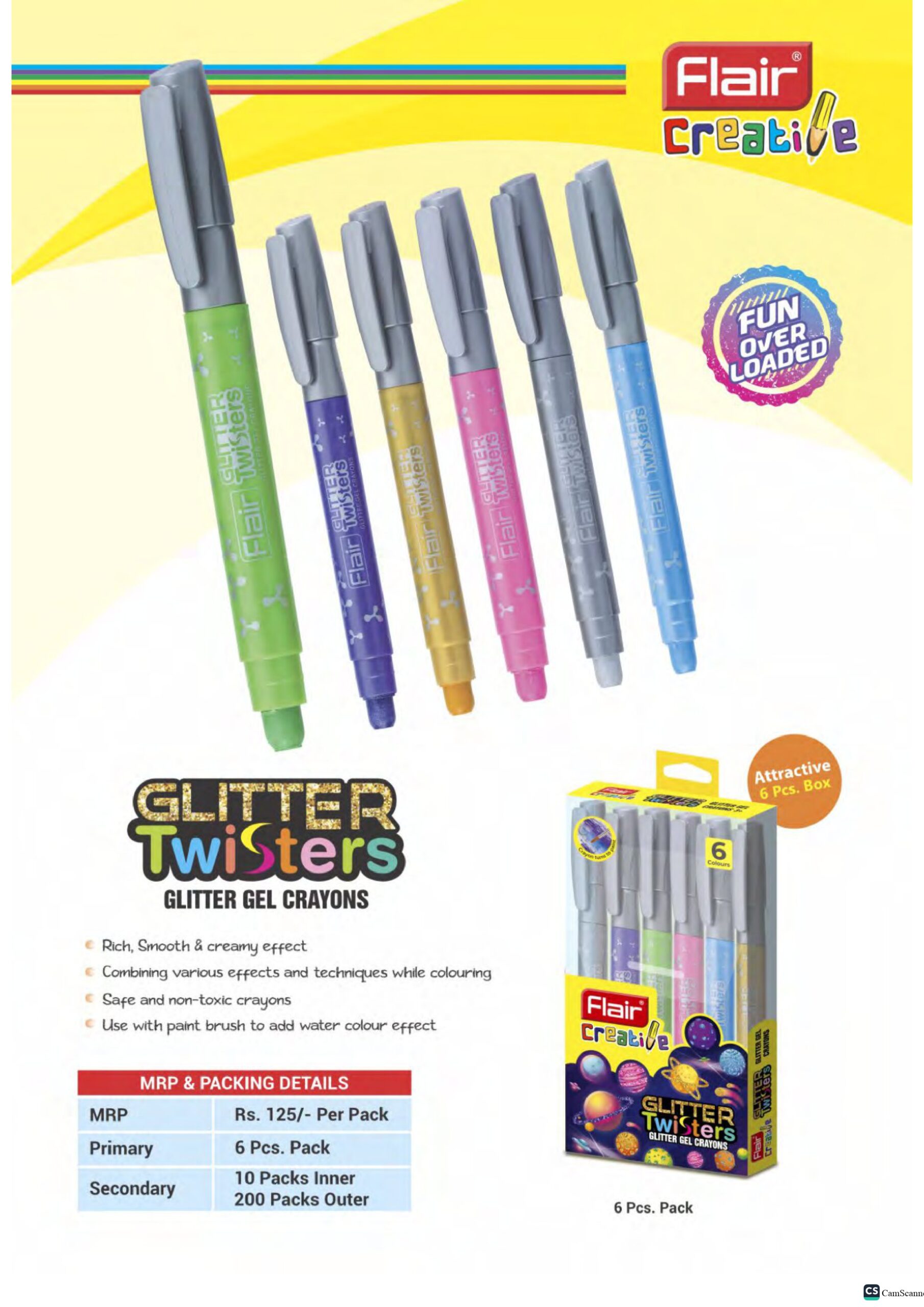 Glitter Twisters Glitter Gel Crayons Pack Of 6 pcs